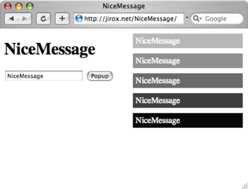 そんなライブラリを書きなぐってみました。 とりあえずこんなの。 id:phaに教えてもらって、Growlをインストールしたんです。そしたら、メッセージがかっこいいじゃないですか。っつことで、こんなのを作ってみました。面白いことに、これで、JavaScriptのソ…
